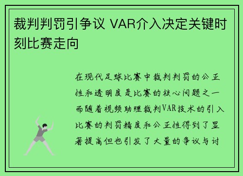 • 裁判判罚引争议 VAR介入决定关键时刻比赛走向
