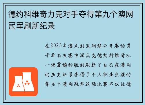 • 德约科维奇力克对手夺得第九个澳网冠军刷新纪录