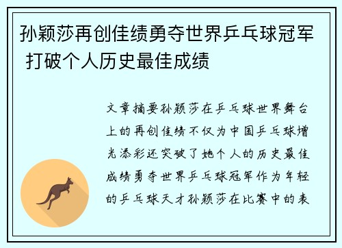 • 孙颖莎再创佳绩勇夺世界乒乓球冠军 打破个人历史最佳成绩