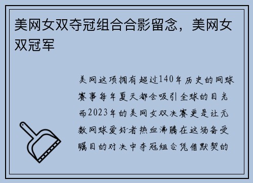 美网,这项拥有超过140年历史的网球赛事,每年夏天都会吸引全球的目光。而2023年的美网女双决赛,更是让无数网球爱好者热血沸腾。在这场备受瞩目的对决中,夺冠组合凭借默契的配合和出色的发挥,最终站在了最...